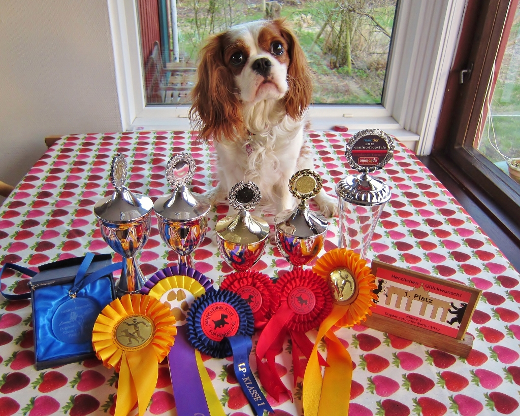 I de seneste 9 år har jeg trænet med mine cavalierer, og konkurreret indenfor DK lydighed, rally-lydighed og ikke mindste HTM/Freestyle. Det har været pragtfuldt, og jeg har nydt det hele; konkurrencerne, rejserne for at konkurrere i udlandet, selve træningen og hundearbejdet. Vi har opnået mange fine resultater og titler, og deltaget i internationale sammenhænge.