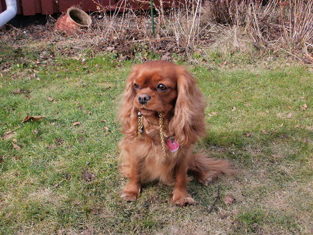 Pludseligt, som jeg stod med favnen fuld af vasketøj, kom min lille superhund og satte sig foran mig med min guldkæde i munden! 🙂 🙂