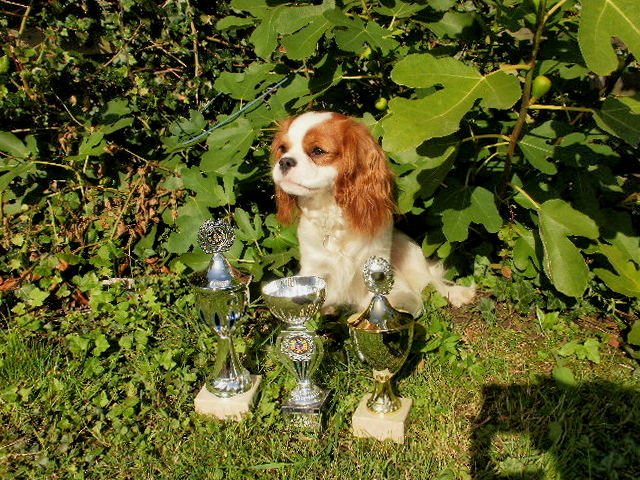 Supersignalet, tre korte stød i fløjten, som betyder: ‘slip hvad I har gang i, vend i luften og kom til mig’ arbejder vi på, og vi er igang med ‘stop hvad du gør lige nu og læg dig ned’ – et stød i fløjten. De andre cavalierer kender disse to signaler og reagerer prompte, Toasty lærer meget ved at se på dem, men vi træner det også uden de andres tilstedeværelse.